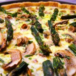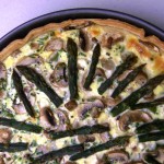 De cand am descoperit aluatul ala gata pregatit, imi vine sa gatesc numai quiche. Ce gasesc prin frigider, aia pun in el. De data asta, a fost sa fie sparanghel si ciuperci. Reteta e aceeasi ca si aici, cu urmatoarele deosebiri: