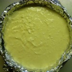 Tapeteaza o forma circulara cu fund detasabil cu hartie de copt sau folie de aluminiu (cea dim urma te va ajuta sa desfaci mai usor prajitura din forma).