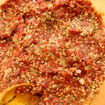 Intr-un castron, amesteca foarte bine toate ingredientele de mai sus – potriveste cantitatea de sare si piper dupa gust.  In cazul in care nu te dai inapoi de la iutzeala, mai poti adauga niste paprica iute.