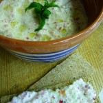 Intr-un castron, amesteca ridichile, castravetii, iaurtul, menta tocata si usturoiul.  Amesteca.  Asezoneaza cu cumin, sare, piper si suc de lamaie. Serveste cu bucati de lipie prajite in cuptor sau cu crackers.