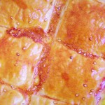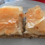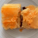 eu fac plăcinta asta cu diferite umpluturi şi mici variaţiuni pe temă dată insă întotdeauna tai pătratele/romburile/whatever după ce o aranjez în tavă, crudă, înainte de a o băga la cuptor. cu o lamă de cuţit ascuţită.