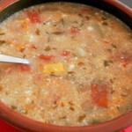 Dar sa revenim la chestiuni mai pamantene, cum ar fi ciorba asta de fasole verde a la maniere de Radu Anton Roman.  Cu retetele domniei-sale, am o problema: imi produc foame instant, insa sunt mult prea grele.  De-aia le ajustez pe ici pe colo, astfel incat sa fie digeste pentru niste stomahuri de oraseni stresati si obsedati de colesteroale si altele asemenea.  V-o ofer in varianta bucurestenizata, desi  – tin sa o spun – este o reteta ardeleneasca get-beget.