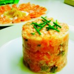 Adaugi apoi ceapa, ardeiul, telina, ouale si maioneza si amesteci din nou. Daca salata ti se pare prea vartoasa, o mai potrivesti cu putin ulei. Asezonezi cu piper si decorezi cu frunzele de telina tocate. Reteta cea originala nu include ardei rosu si foloseste ceapa alba, nu rosie, insa eu o prefer pe asta a mea, mai colorata, mai neaosa. In regatul meu zanesc, am mancat-o cu salata de varza, ca sa mai sarim carnea din program.