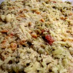 Presara deasupra cascavalul ras amestecat cu pesmetul. Da la cuptor pentru 20 minute – in ultimele 5 minute da cuptorul pe grill, sa se rumeneasca frumos stratul de branza si pesmet.
