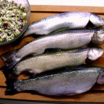 4 pastravi frumosi si proaspeti (ai mei veneau direct de la pastravarie si zburdasera recent prin apa) – veti sti ca sunt proaspeti daca: se uita la voi cu ochi limpezi, nu miros a peste, au pielea lucioasa si bine intinsa.