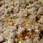 – tot in compozitia de crumble, am inlocuit scortisoara (desi merge si ea cu piersicile) cu 1/2 lingurita de ghimbir macinat.