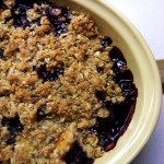 Gata, v-am chinuit destul cu insectele! Sa trecem la ceva … accesibil. Un crumble cu piersici si afine, dupa reteta de aici, cu urmatoarele modificari:
