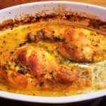 4. Astfel marinat, puiul poate fi prăjit în tigaie sau pe grătar ori copt în grătar.  Eu am uns cu puțin ulei o tigaie ceramică și l-am perpelit cam 6 – 7 minute pe fiecare parte, având grijă să nu îl zgândar prea mult, căci e carne delicată, care se lipește dacă e molestată … De întors, l-am întors cum se cuvine, cu cleștele, nu prin înțepare repetată cu furculița, care l-ar usca și l-ar sărăci în frăgezime. Așa, puiul va fi rumen, aromat și suculent. Bete’avon! , cum s-ar zice la Tel Aviv.