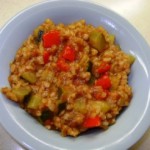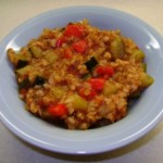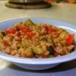 Intr-una dintre serile trecute, sub efectul unui atac de eficienta, curatasem cateva legume de prin camara si frigider.  O ceapa, vreo doi dovlecei, mai nimic. Elanul eficient a trecut fulgerator, inlocuit de o lene regeasca, asa ca le-am inchis intr-o cutie de plastic si … am uitat de ele.  Aseara, infometata si plina de remuscari, le-am descoperit in frigider, acolo unde le lasasem si am improvizat un risotto-pilaf.  Unii ar zice ca e sarbesc, dar nu i-am pus ciuperci.