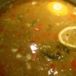 5. Zinico, am facut o supa apropiata. Eu nu calesc legumele niciodata, fac chestia mai dietetica. Si nu am pus tzelina de nici un fel. Si nici ceva iute/acru. Si nici cartof, ca gasesc ca lintea este deja un starch sufizant. Pus ceapa, praz, usturoi, morcov, cimbru in loc de dafinu tau, un dovlecel – pentru dulceatza si textura, un ardei COPT mare, rosu (spaniol), tot pentru dulceatza si un bulion de legume, o sa-tzi zic cum se cheama, de care sint foarte incintata (exista si de pui/vaca).