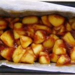 Rade restul de aluat si distribuie-l uniform peste mere. Da la copt pentru 35 – 40 minute, pana cand stratul de deasupra este usor rumen.