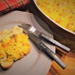 - 190g faină cu agent de creştere, cernută (poate fi înlocuită cu 190f făină albă + ¾ linguriţă praf de copt + ¾ linguriţă sare)