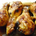 Acopera vasul cu folie de aluminiu si da la cuptor pentru vreo 30 de minute (e bine sa acoperi vasul pentru ca soia are tendinta sa se caramelizeze/arda destul de repede la cuptor sau pe gratar). Â Dupa aceasta prima jumatate de ora, scoate folia, unge pulpele cu sos si lasa inca 15 minute, sa se rumeneasca frumos.