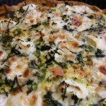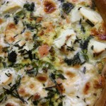 In afara de paste, alt ‘articol’ usor de gestionat in cazul unei noi strategii culinare este quiche-ul.  Dupa cum lesne se poate observa in curgerea acestui blog, este si une de mes faiblesses. Rezonul principal este unul cat se poate de pragmatic: e aproape imposibil sa nu gasesti in racitor ori in camara ingrediente pentru un quiche.  In cazul de fata, somon afumat, ceapa verde, verdeata (din gradina) si crema de branza (philly, ca e a mai buna)