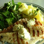 Serveste fileurile de peste cu unt aromat si felii de lamaie, alaturi de cartofi si salata.