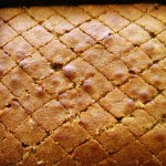 Cat despre reteta mea personala, e un amestec al celor de mai sus, amestec generat numai si numai de incapatanarea mea proverbiala.  Mai intai, m-am incapatanat sa nu o sun pe E., buna prietena grecoaica, ca sa capat de la ea o reteta de incredere.  In al doilea rand, m-am incapatanat sa nu ma uit in camara INAINTE de a ma apuca de prajitura – altfel as fi constatat ca nu am migdale, ci doar nuci.  In al treilea, m-am incapatanat sa frec untul cu zaharul pret de jumatate de ora, ca sa iasa spumos si fluffy, asa cum citisem intr-o alta reteta.  Iar rezultatul a fost ca, la adaugarea laptelui rece, untul s-a separat si am avut mari emotii pana cand prajitura s-a copt si a putut fi gustata.  Pana la urma, se pare ca si incapatanarea renteaza – ravani-ul meu a iesit usor, nu exagerat de dulce si foarte parfumat.