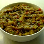 Nu stiu de ce, dar nu ma mai omor dupa salata noastra de vinete traditionala, aia cu mult ulei si multa ceapa.  E buna, nu zic nu, dar parca ii lipseste un je ne sais quoi picant.  De-aia, in ultima vreme tot experimentez pe cobaii mei de acasa.  Ca sa nu declansez revolte de strada, impart cantitatea de vinete coapte in doua – juma’ o fac dupa reteta bunicii, cealalta juma’ e material de laborator – o supun la tot felul de teste.  Astfel am ajuns si la varianta XX24B – va sa zica o corcitura intre salata marocana de vinete (zaalouk) si cea turceasca (tuncilik).