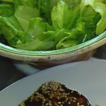 Incinge bine o tigaie-grill mare, de preferinta cu teflon. Scoate bucatile de ton din marinata si pune-le in tigaie. Frige-le 2 minute pe o parte si 2 minute pe cealalta – tonul se face foarte repede si intentia este sa ramana roz in mijloc, precum un steak medium rare – altfel devine atos si insipid.
