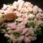 – adaugat ceapa verde tocata cateva minute, dupa ce puiul a facut crusta frumoasa si rumena